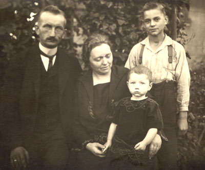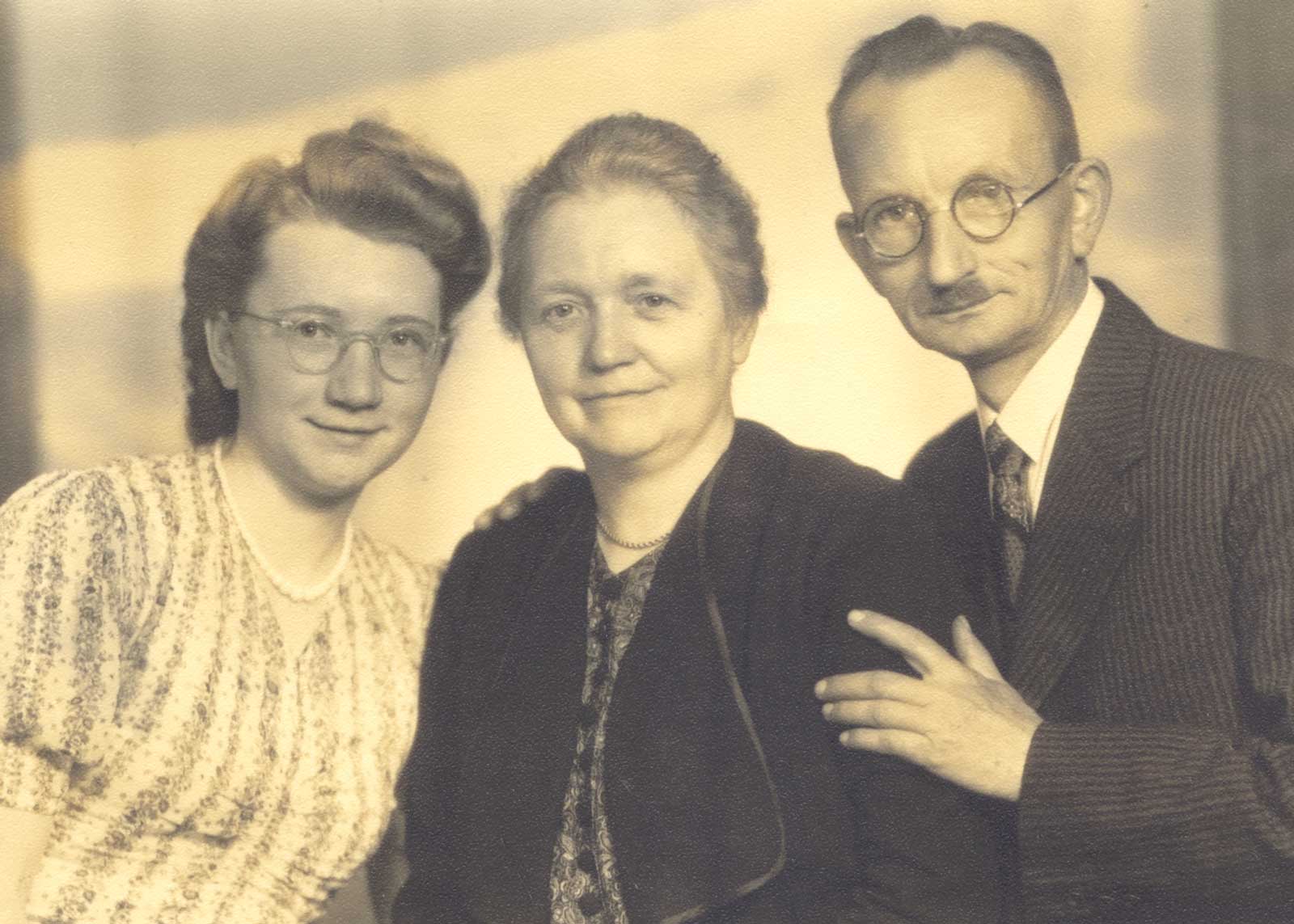 | v.l.: Vater Joseph, Mutter Maria, Gertrud, Gertruds Cousin Bruno Boldt | v.l.: Gertrud, Mutter Maria, Vater Joseph | ||
